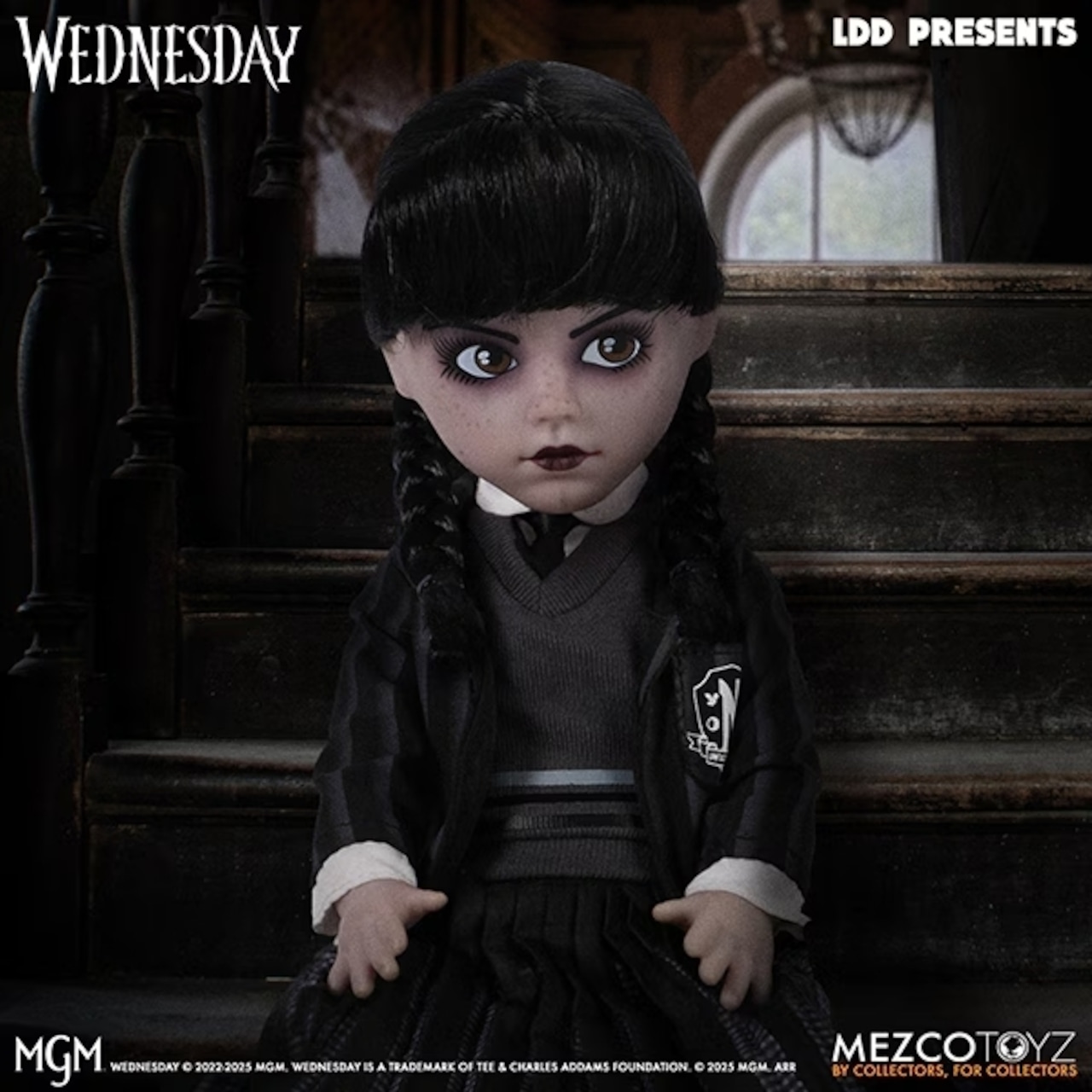 最新シリーズを待ち望む中、メズコトイズのLDDシリーズから、両親も通った特殊な能力を持つ子供たちの学校「ネヴァーモア学園」の制服姿となったウェンズデー・アダムスが新たに登場!