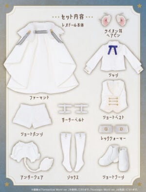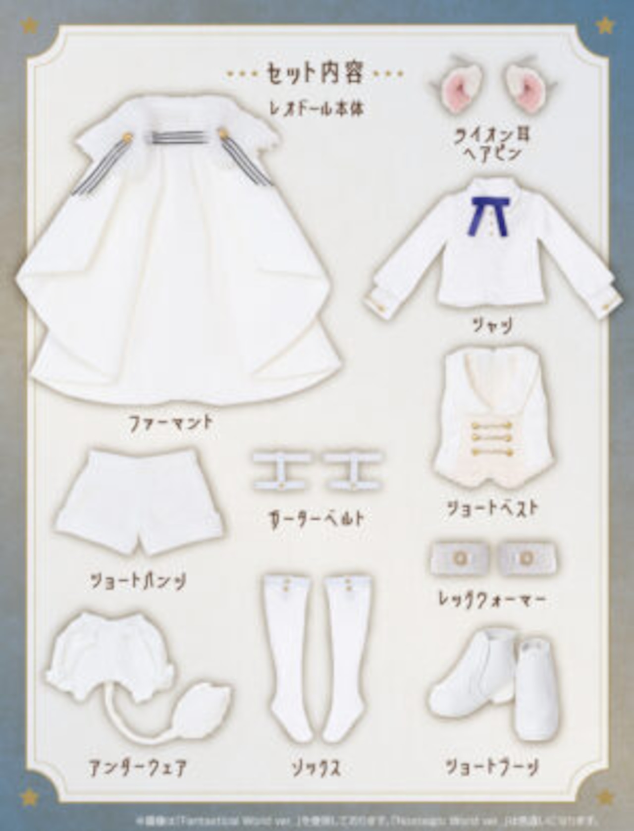 レオドール本体・ライオン耳ヘアピン・ファーマント・ショートベスト、シャツ・ショートパンツ・ガーターベルト・ソックス・ショートブーツ、レッグウォーマー・アンダーウェア