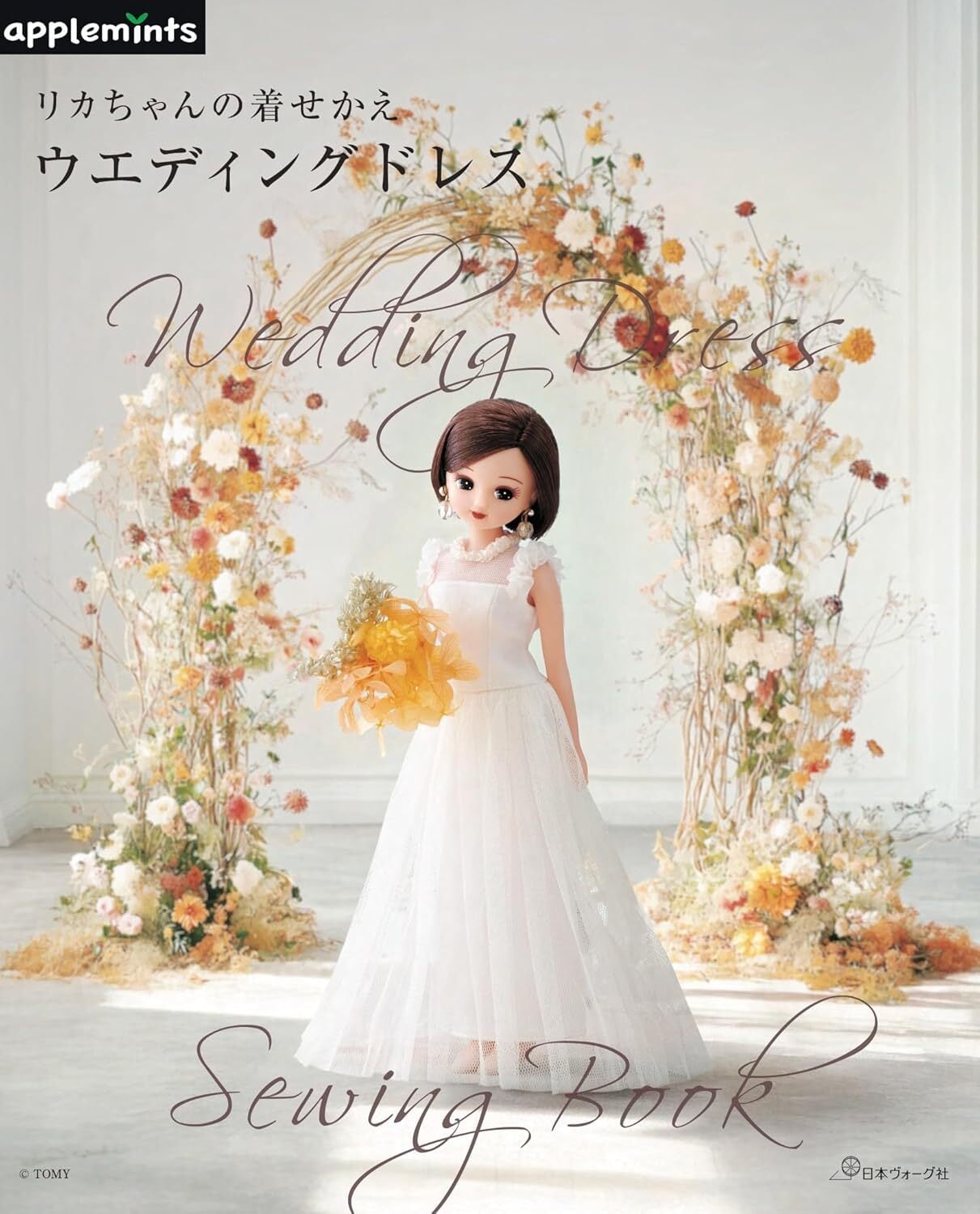 この本は、可憐なウエディングドレスをテーマに、「リカちゃん」用にドレスを手作りするソーイングの作品集。作品はウエディングドレスの基本の種類(Aライン・プリンセスライン・マーメイドライン・エンパイアライン・オフショルダー・ミニ丈・カラードレスなど)で展開。