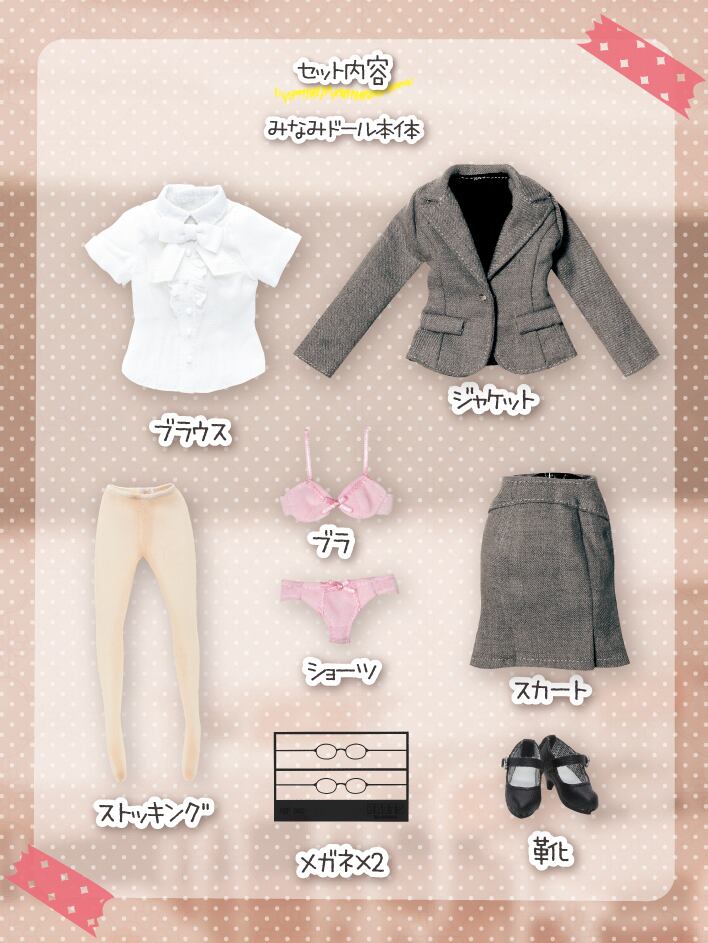 みなみドール本体・ジャケット・ブラウス・スカート・ブラ・ショーツ・ストッキング・靴・メガネ×2