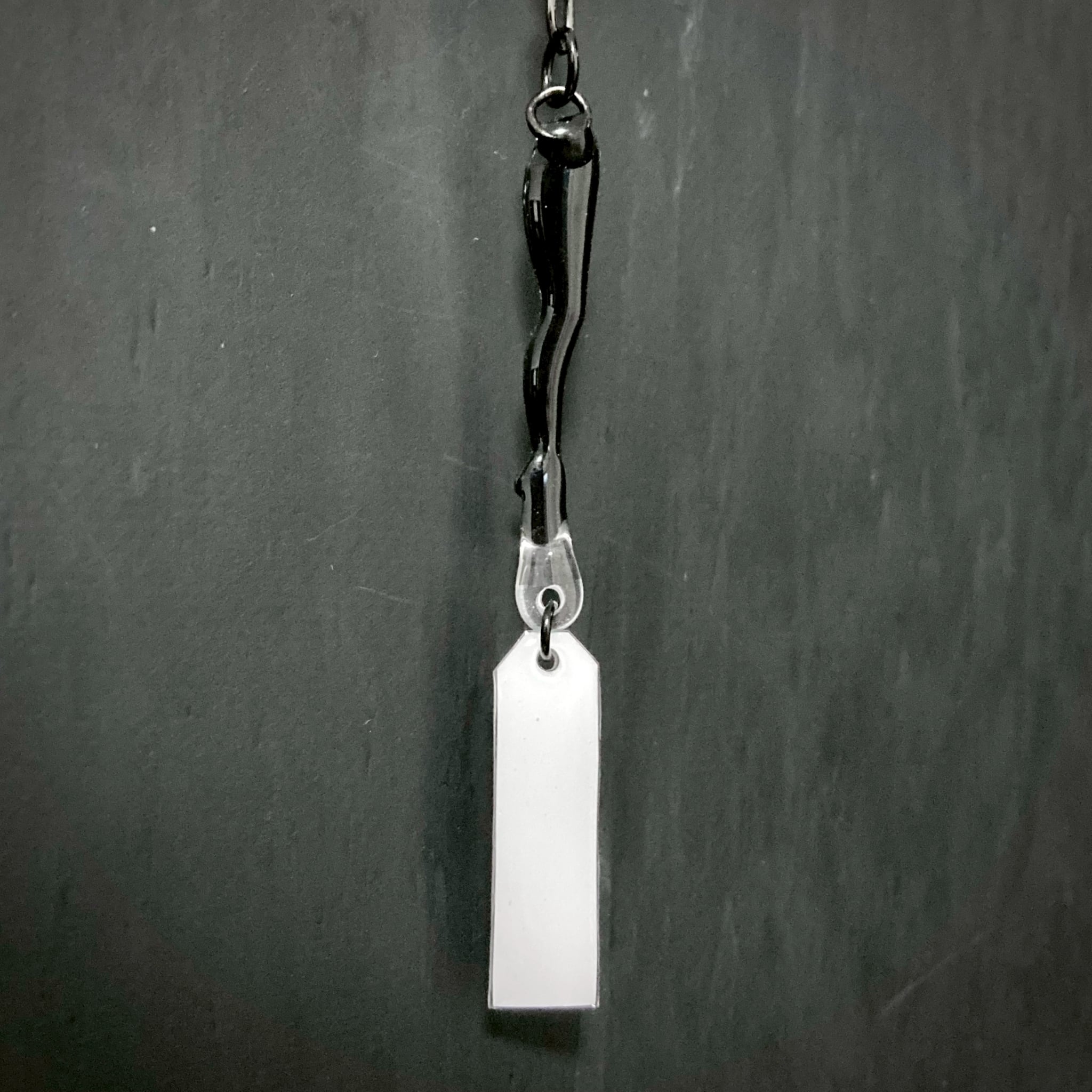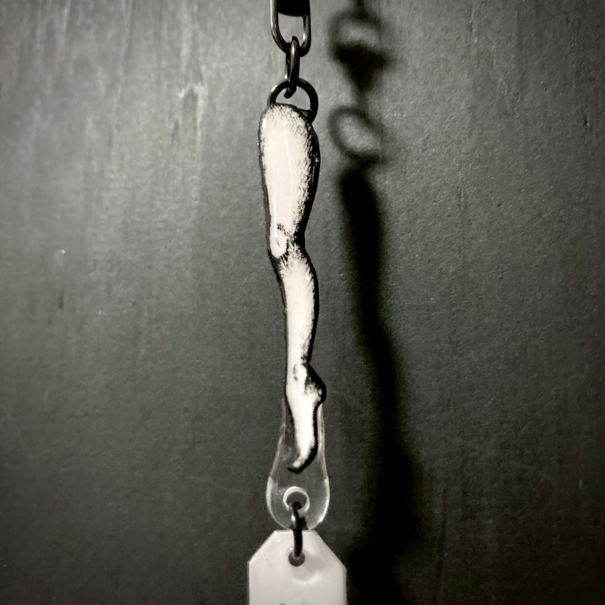 印刷したイラスト・タグにレジンを塗布・硬化後、パーツを金具で繋ぎ、キーホルダーにしました。