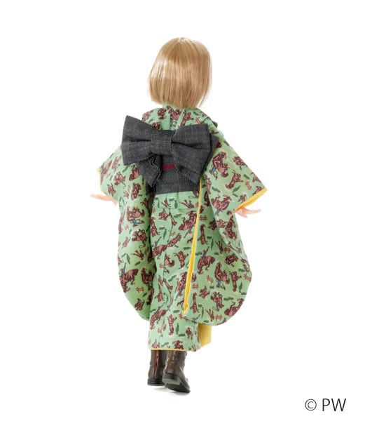 ruruko本体、振袖、ベルト付き作り帯、半襟付き肌着、帯揚、補正付き伊達締、ゴム伊達締、ショーツ、ミニコーム小2本、ハーフブーツ(STOC)。
