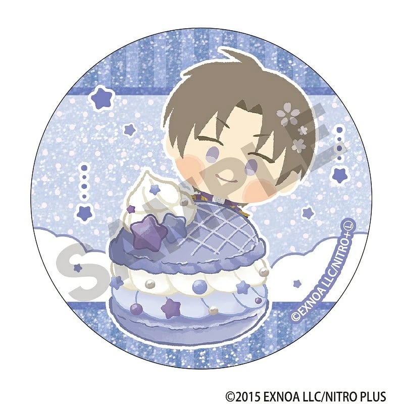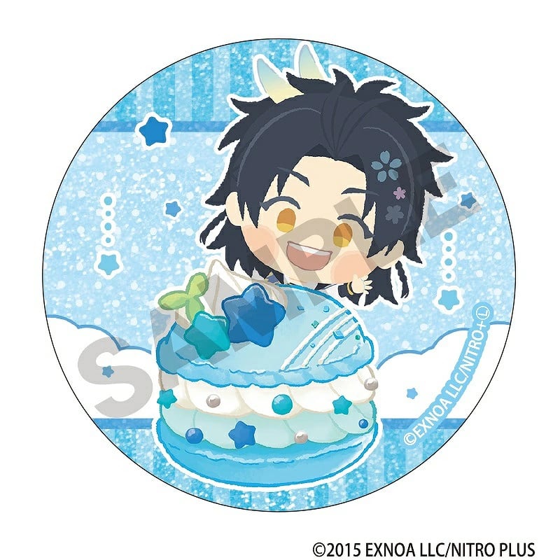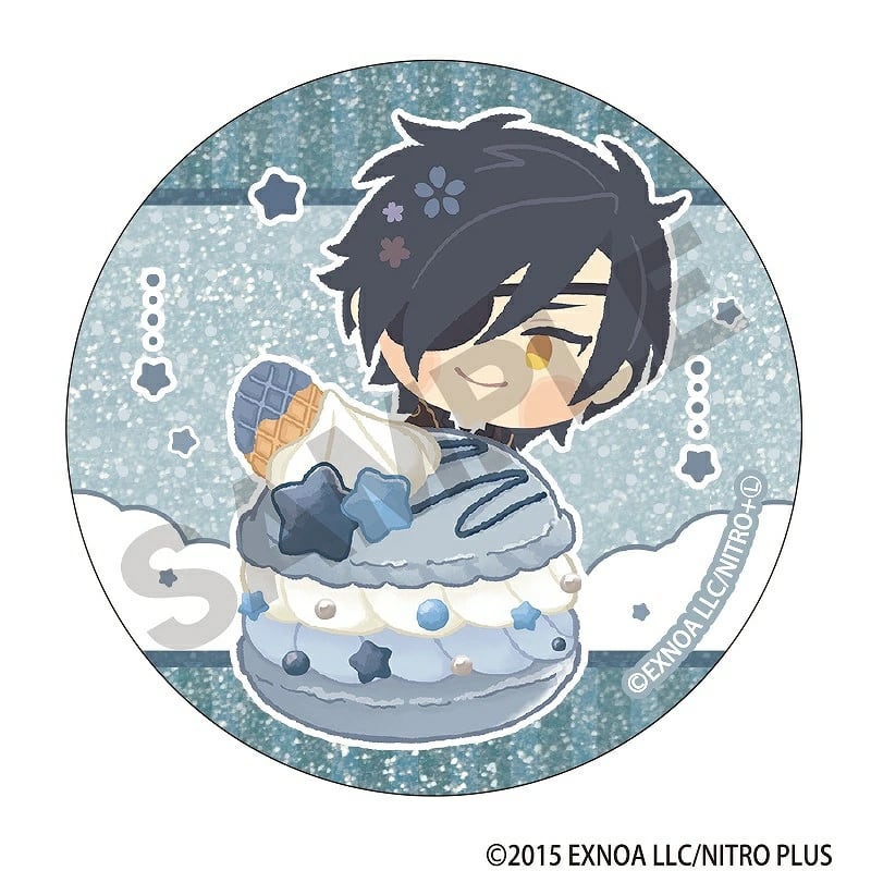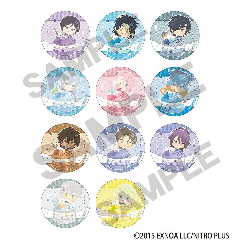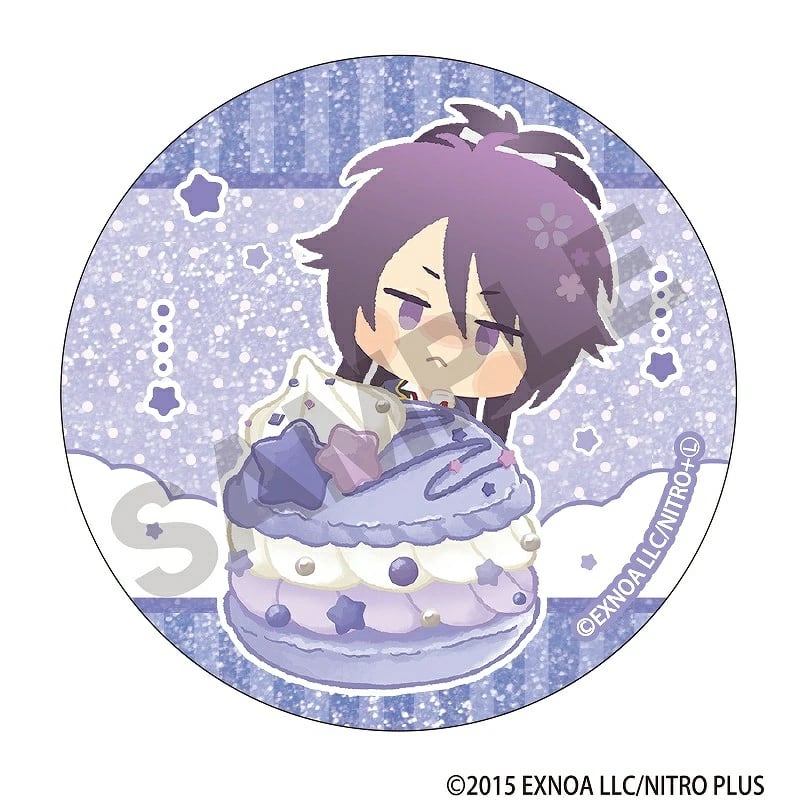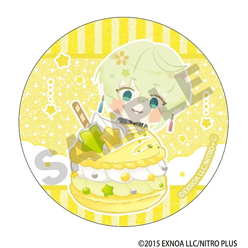 パステル調のマカロンモチーフと「わんぱく!刀剣乱舞」のトレーディンググリッター缶バッジ