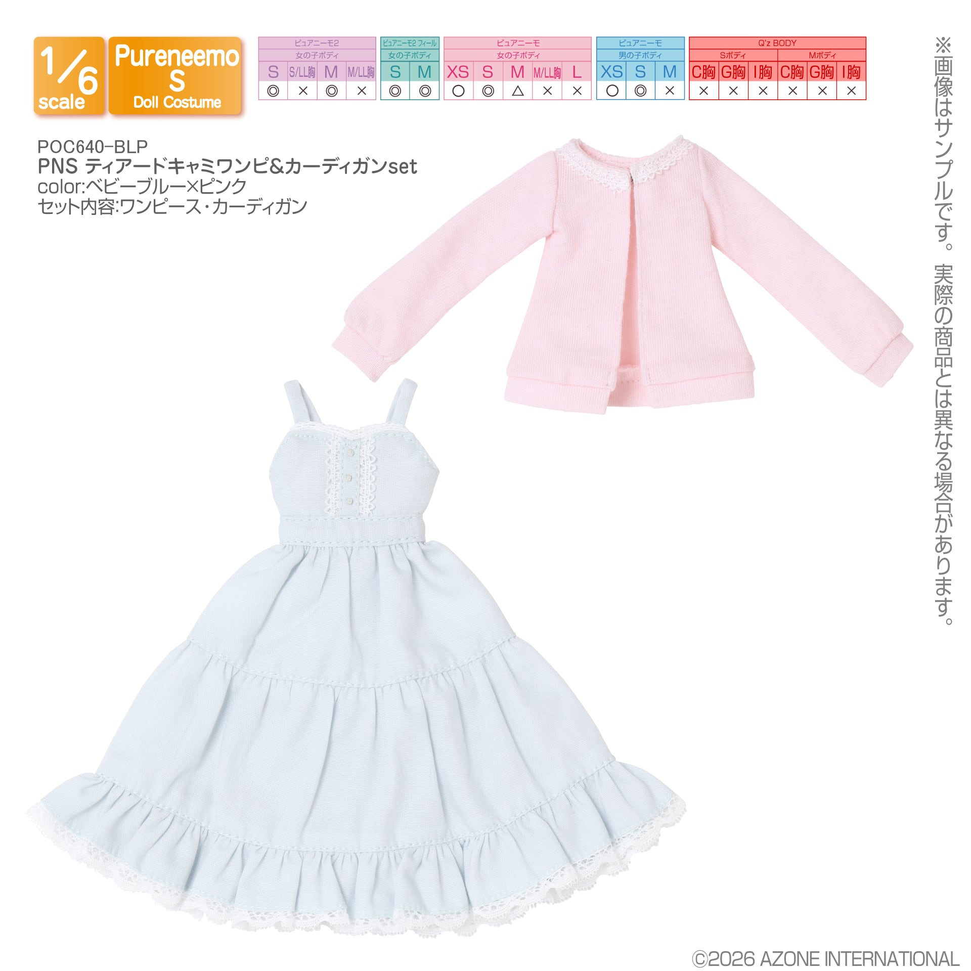 【予約/5月発売予定】PNS ティアードキャミワンピ&カーディガンset・ベビーブルー×ピンク(POC640-BLP)
