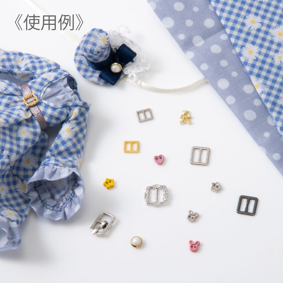 ミニミニサイズのボタンやバックルなど、ドール服用のパーツが作品の完成度を高めてくれます。