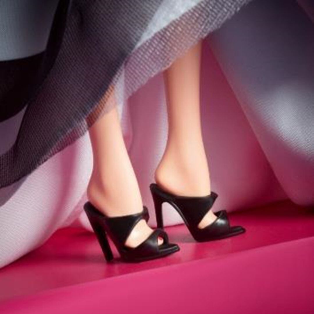 バービーの65周年を記念したゴージャスなバービー!ブロンドヘアをポニーテールでまとめ、バービーを象徴する伝統的なアイテムにインスパイアされたドレスを着用しています。